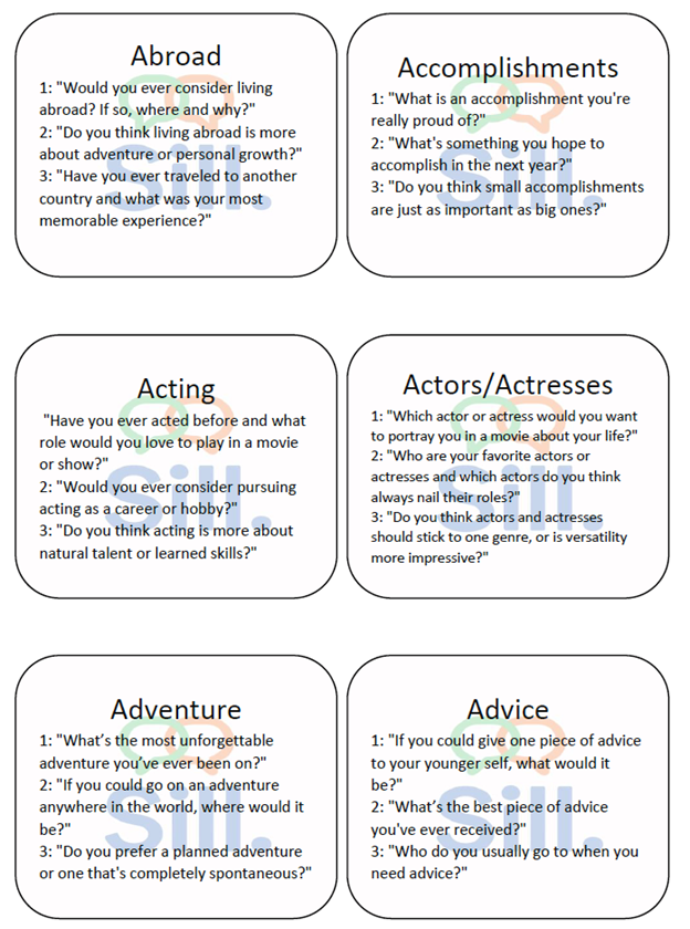 Looking for a way to spark meaningful, fun, and unforgettable conversations? Sill. is packed with 454 unique topics, each with 3 thought-provoking questions—that’s over 1,300 conversation starters in your pocket!
